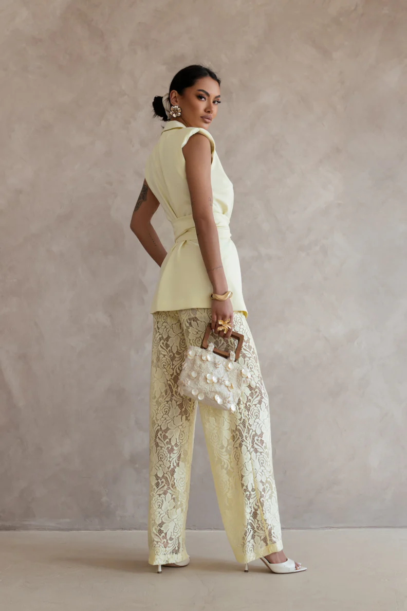 Komplet AURA – Żółty to elegancki zestaw, który łączy w sobie nowoczesny krój z wysokim komfortem noszenia. Zaprojektowany z myślą o kobietach ceniących stylową prostotę, komplet sprawdzi się zarówno w codziennych, jak i bardziej formalnych stylizacjach. Delikatna, słoneczna tonacja żółtego dodaje świeżości i będzie przyciągać uwagę.