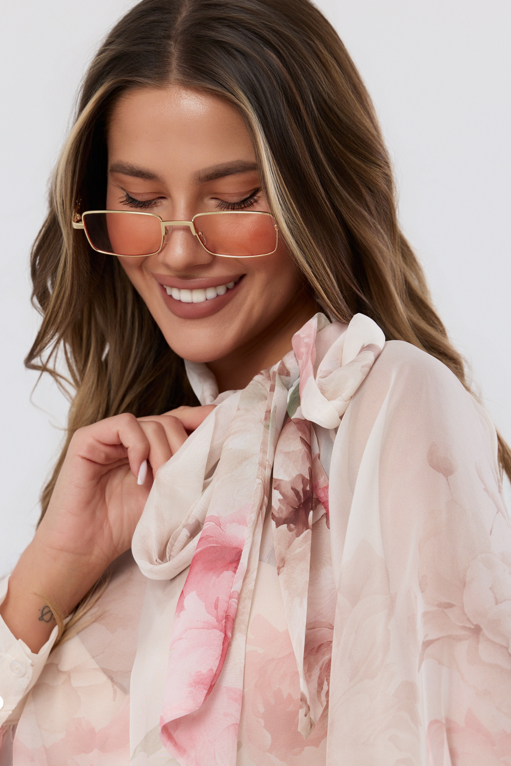 Szyfonowa bluzka w kwiaty z wiązaniem pod szyją