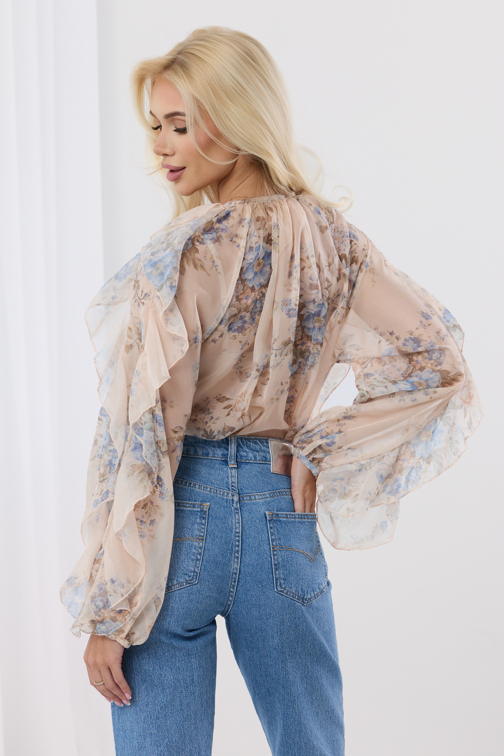 Zwiewna bluzka z falbanami i kwiatowym wzorem